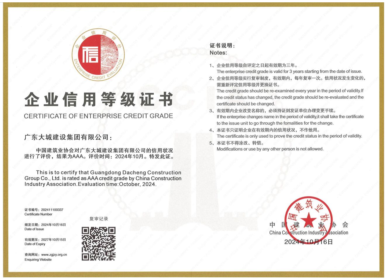 我司榮獲全國“建筑業(yè)AAA級信用企業(yè)”稱號